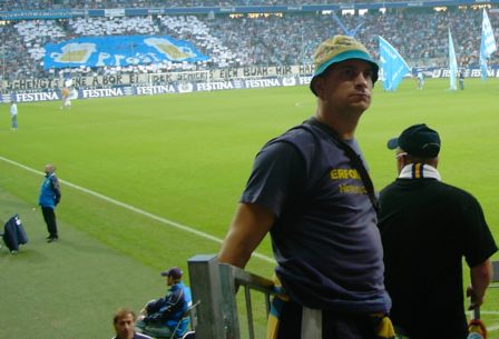Da heute ja Arenatourismustag angesagt war, wurden meine Nerven gleich aufs äußerste strapaziert, als eine doofe Tucke hinter mir meinte, dass die Tatsache, dass es in dem Scheiß-Stehplatzblock Sitze gibt, bedeutet, dass man sich auch hinsetzen muss.