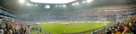 Nach einer sehr entspannten Kontrolle ging es rein in den neuen Tempel der Sechzger und Bayern (undenkbar, wenn ich mir vorstelle, ich müsste mein Stadion mit den 96ern teilen…). Innen ist das Teil enorm beeindruckend, drei Ränge machen schon etwas her. Auch finde ich es ein wenig netter, als die meisten anderen Arenen (Leipzig mal ausgenommen).