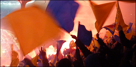 Zum Intro gab es von Braunschweig mal wieder ein paar hübsch anzusehende Bengalos, dazu kleine Schwenker und Konfetti.