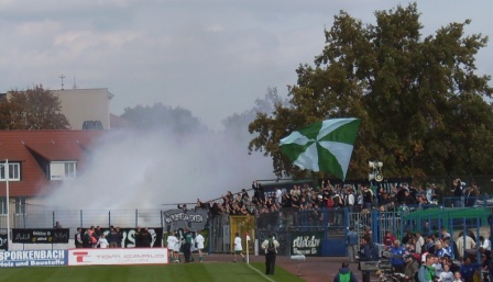 Keine Ahnung, ob das witzig sein sollte, aber der Stadionsprecher scheint, wie einige der Zuschauer, ein Ewiggestriger zu sein, kündigte er die heutige Partie doch mehrfach als Spiel der Regionalliga Nordost an.