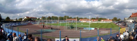 Mit viel zu wenig Schlaf (da am Vortag die Mutter aller Staus meine Reise von Karlsruhe von gut vier mal eben auf gut zehn Stunden ausdehnte) gings zur Mittagszeit nach Magdeburg, um dort kurz vor der Fertigstellung des neuen Grubestadions noch schnell den Ausweichground zu kreuzen.