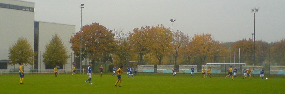 Bei strömendem Regen gings zur glorreichen Rheingoldarena, wo bereits – neben den üblichen Eltern – ein paar Gestalten des B-Platz-Pöbels zugegen waren (und mir vom bereits verpassten 1:0 berichteten).