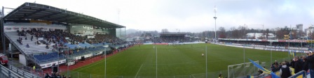 Wie schon letztes Mal, so gabs auch diesmal einen Umbau der Wacker-Arena zu bestätigen, wurde doch nun eine größere Stahlrohrtribüne für die Gäste direkt auf der Laufbahn errichtet und auch die Haupttribüne war durch einen Umbau näher ans Spielfeld gerückt.