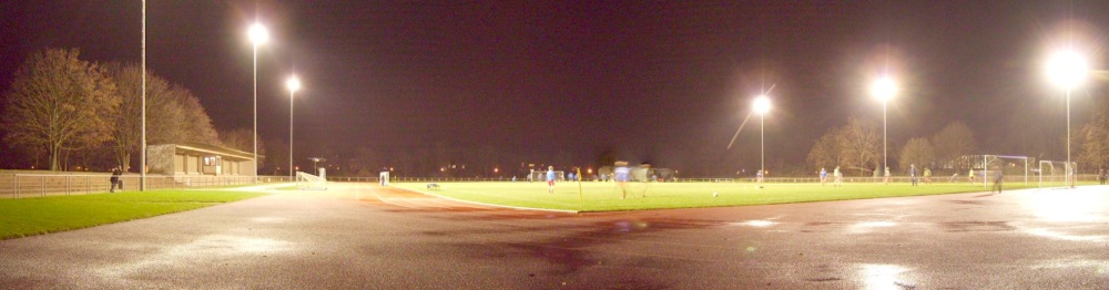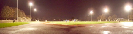 Der Grund für den Umzug konnte nicht ermittelt werden, auch der andere Platz hätte über eine Flutlichtanlage verfügt. Nun gut, wir wollen uns mal nicht beschweren, war schon schöner so. Kapazität würd ich mal auf großzügig 3.500 schätzen.