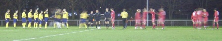 Beim Auflaufen der Teams waren meine Sympathien klar verteilt – Heim in rot, die Gäste in blau-gelb (und sogar ganz zeitgemäß in einem pfiffigen marineviolett…).