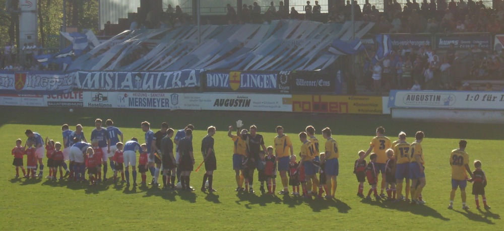Das Spiel begann mit einer kleinen Choreographie der Meppener Ultras – gar nicht schlecht! Für so ‘nen Gurkenkick – Respekt.