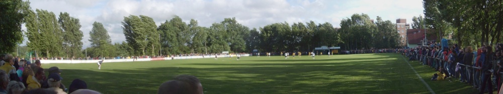 Der Sportplatz vom TVE in Veltenhof wurde mit Bierbuden in jeder Ecke und sogar einer kleinen Hilfstribüne aufgehübscht, dazu gabs lecker Essen und billig Trinken. Konnte man also fast nicht meckern, wenn nur das fiese Wetter nicht gewesen wäre – wobei, ich will mich mal nicht beschweren, immerhin hat es nicht geregnet!