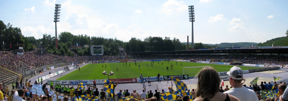 Aue ist mittlerweile über eine neue Straße anzusteuern, die einen direkt zum Stadion respektive Parkplatz (jedenfalls wurde eine Baugrube zum Parken genutzt) führte.